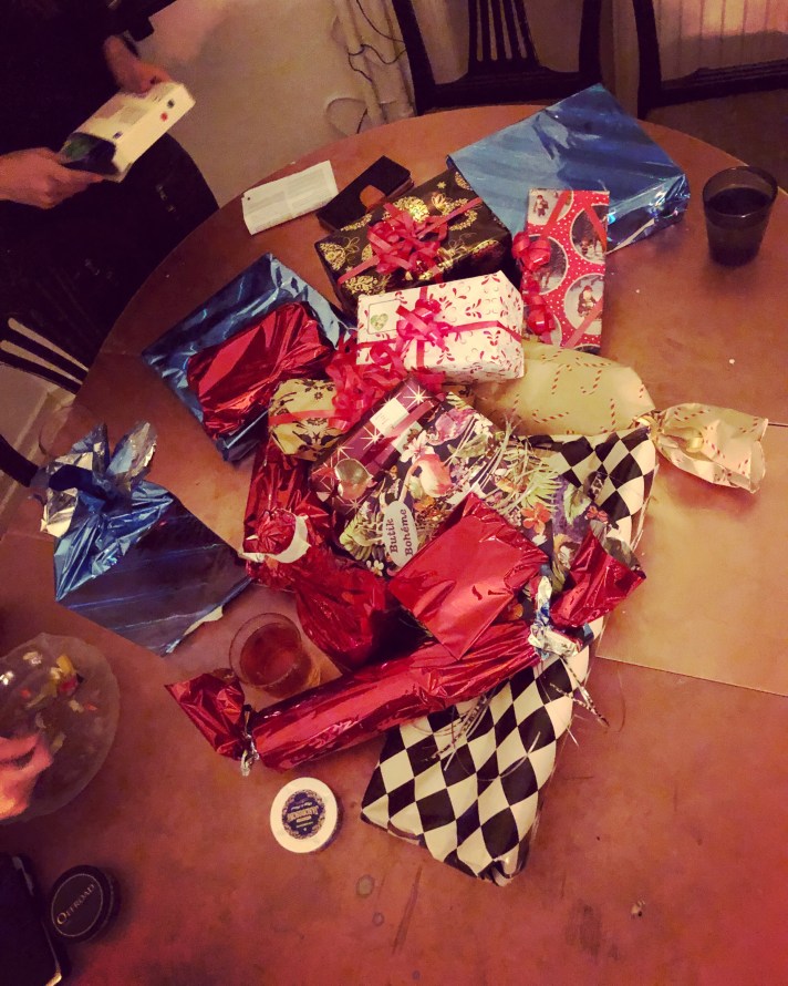 Senare begav vi oss hem till dotterns gudmor för härliga återseenden, ännu mera skratt och julklapps-spelet: Vår plan ”Vi ska vinna allt”, …den gick väl sisådär…