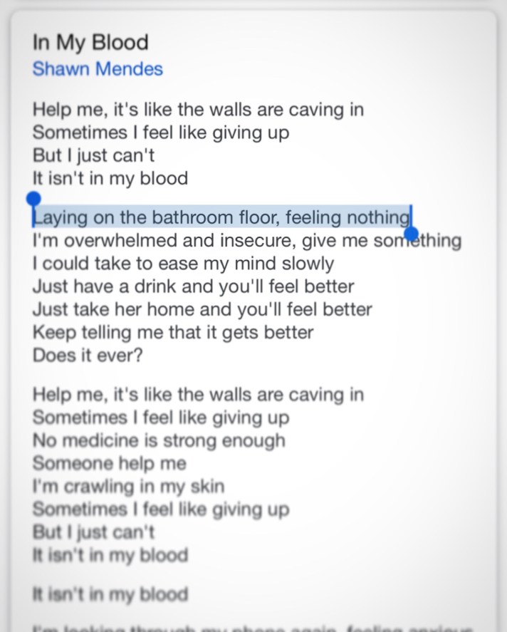 [Lyrics] ”Laying on the elevator floor, feeling nothing”…