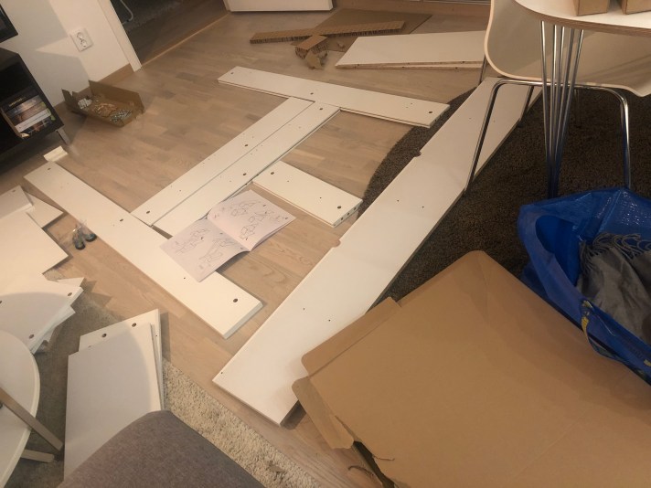 När ångan ändå var uppe och bubblet inte var slut, skruvades det även tv-möbel. Lär sova gott.