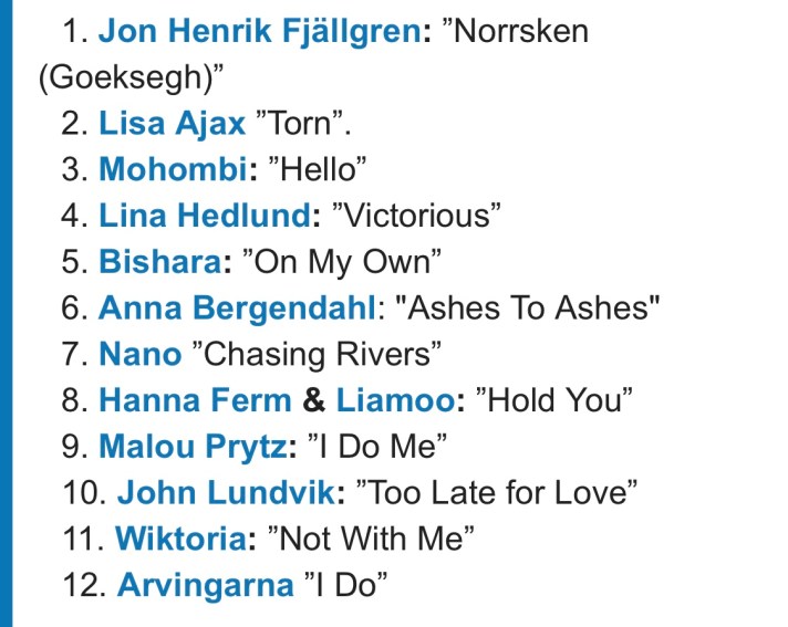 Konstaterade att alla bidrag i kvällens final i Melodifestivalen handlade ju om Mig.