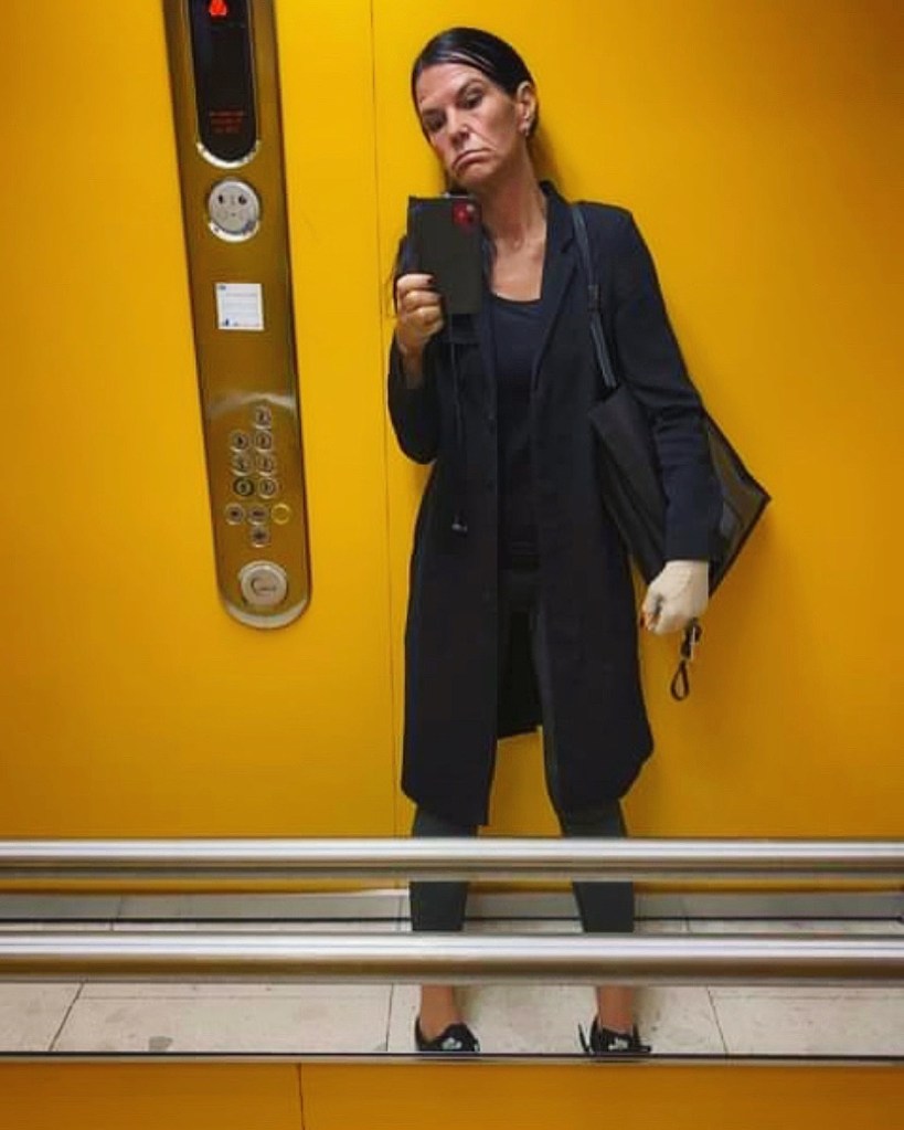 Fråga mig inte vad som är värst… Färgen i hissen, eller 45 minuter Intervaller från helvetet på en spinningcykel… 🙈🔫