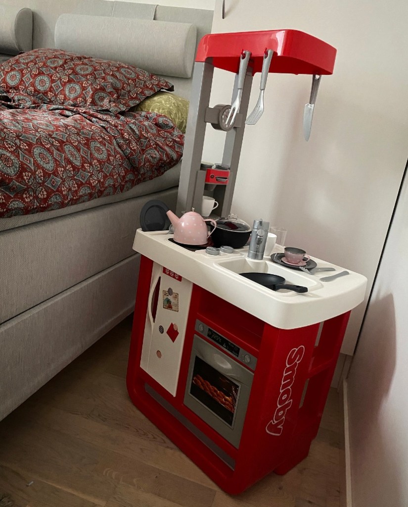 Ny dag, nya pannkakstroll! Pannkakor till frukost… Sen byggdes det sommarstuga i köket, vi glömde dock ansöka om bygglov för projektet Koja… Rita, måla, Play-doh dega, mellanmål och klockan hade inte hunnit bli 10. Leksaksköket gick varmt och det dukades fram och dukades om, bakades och fixades. Kände mig väldigt smart innan lunch, in med badleksakerna och ställde in barnbarnen i duschen. Andas farmor 😂