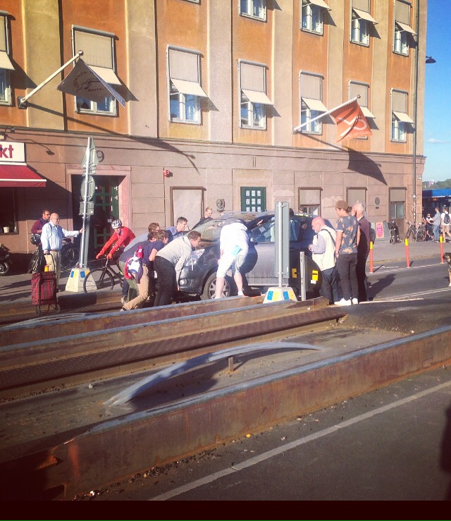 Den dagliga dosen av Slussen kaos bestod idag av grenen ”Lyfta bil”…