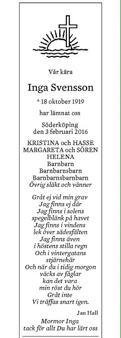 Ikväll är jag personligt privat – min mormor har idag fridfullt slutat sitt rika liv. Så enormt många livserfarenheter i kärlek, styrka och glädje hon gett oss – idag är livserfarenheten enormt tung.