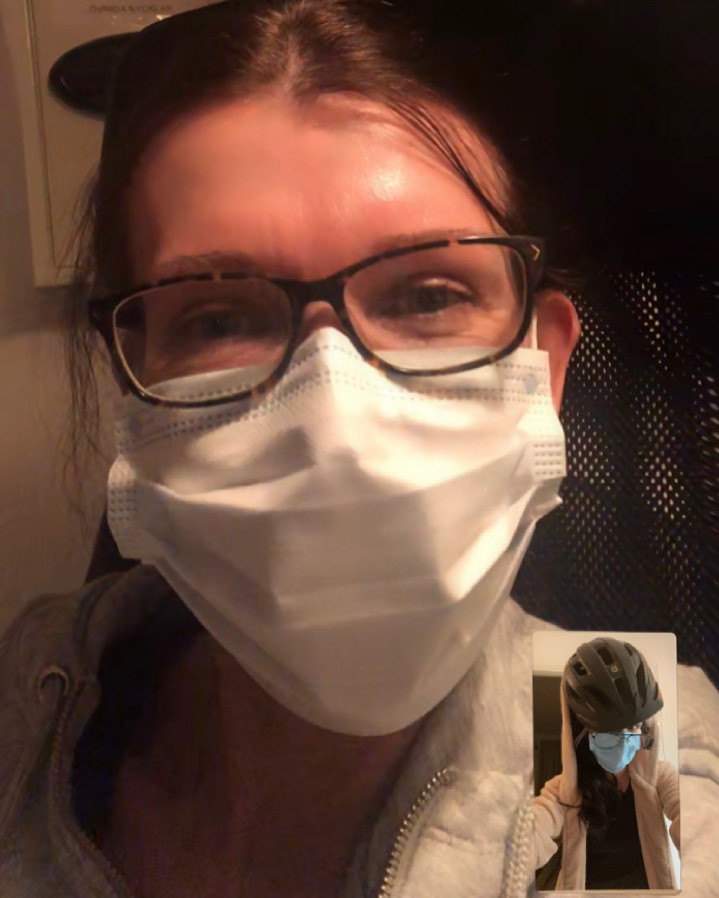 Ett styck bildbevis 😂 Ibland jobbar hon också och inte springer 10 mil efter ett benpass 👍🏼 Om man inte har ett visir så tror vi att kanske cykelhjälm fungerar lika bra👍🏼 OBS! Restriktion från handlingskraftiga ansvarstagande medborgare.