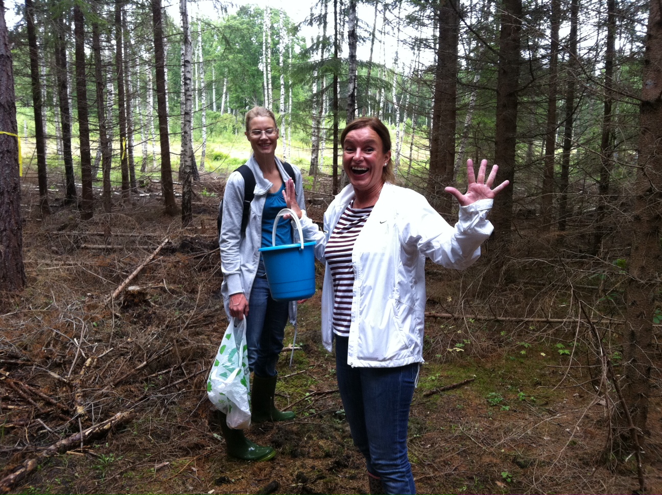 Efter 1 ½ timme klev vi ur skogen med 6 liter kantareller och våra