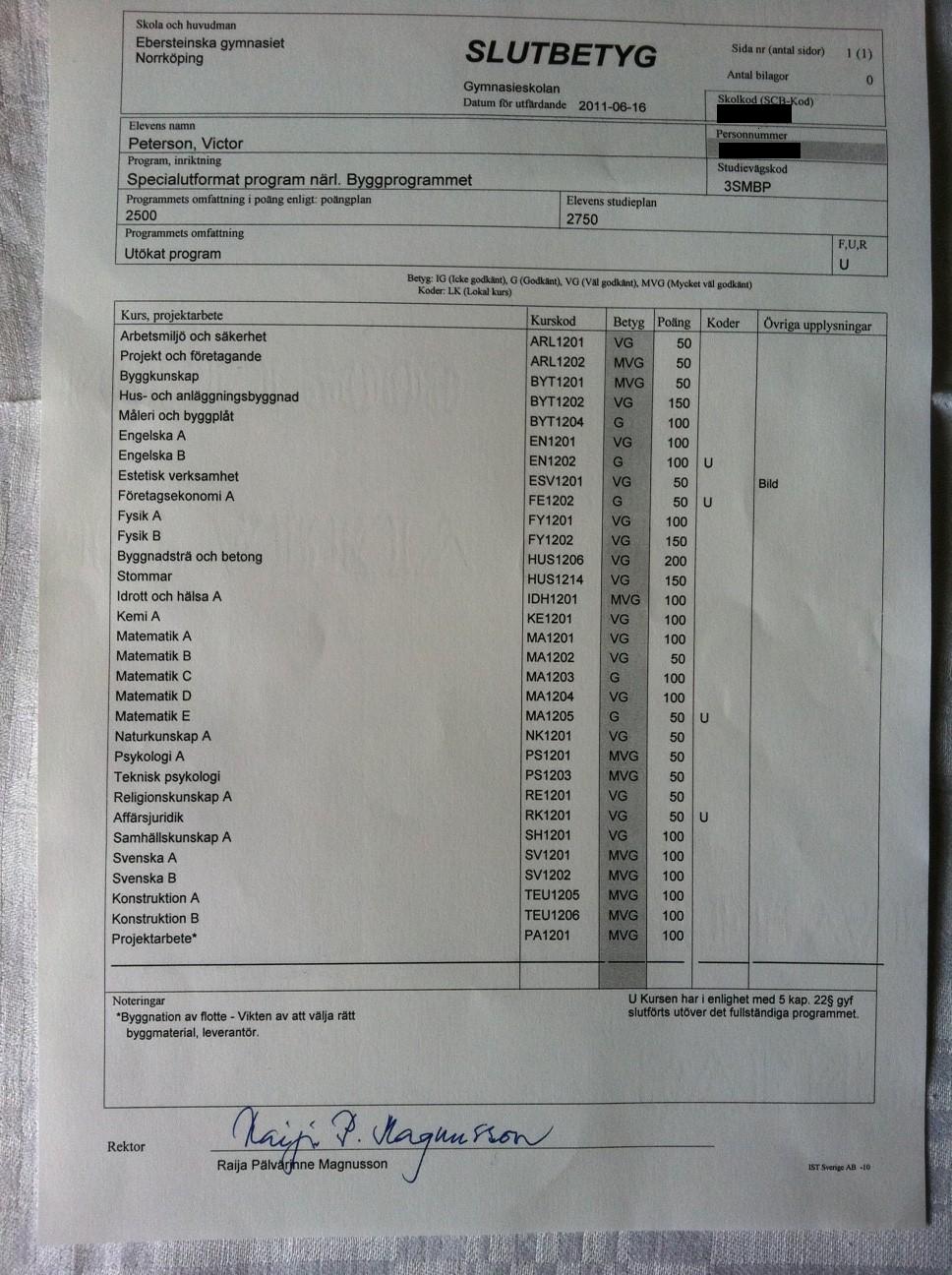 och betyget… 15 VG, 10 MVG