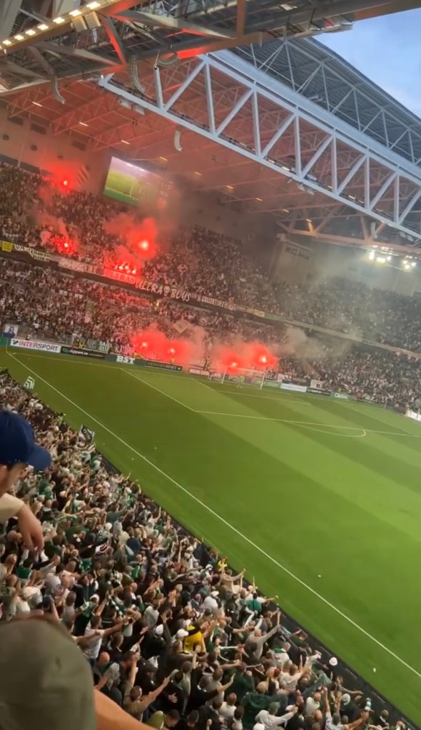 Avspark 20.00 Hammarby – Twente. Lite över 24 500 i publiken och med tanke på ordningsstörningarna från tidigare match uppmärksammade vi inte en endaste holländare. Men det tröttsamma och osportsliga i en sport det hoppar jag att kommentera. Nu är Twente iallafall medvetna om den 12:e spelaren 👊🏼🇳🇬💚🇳🇬